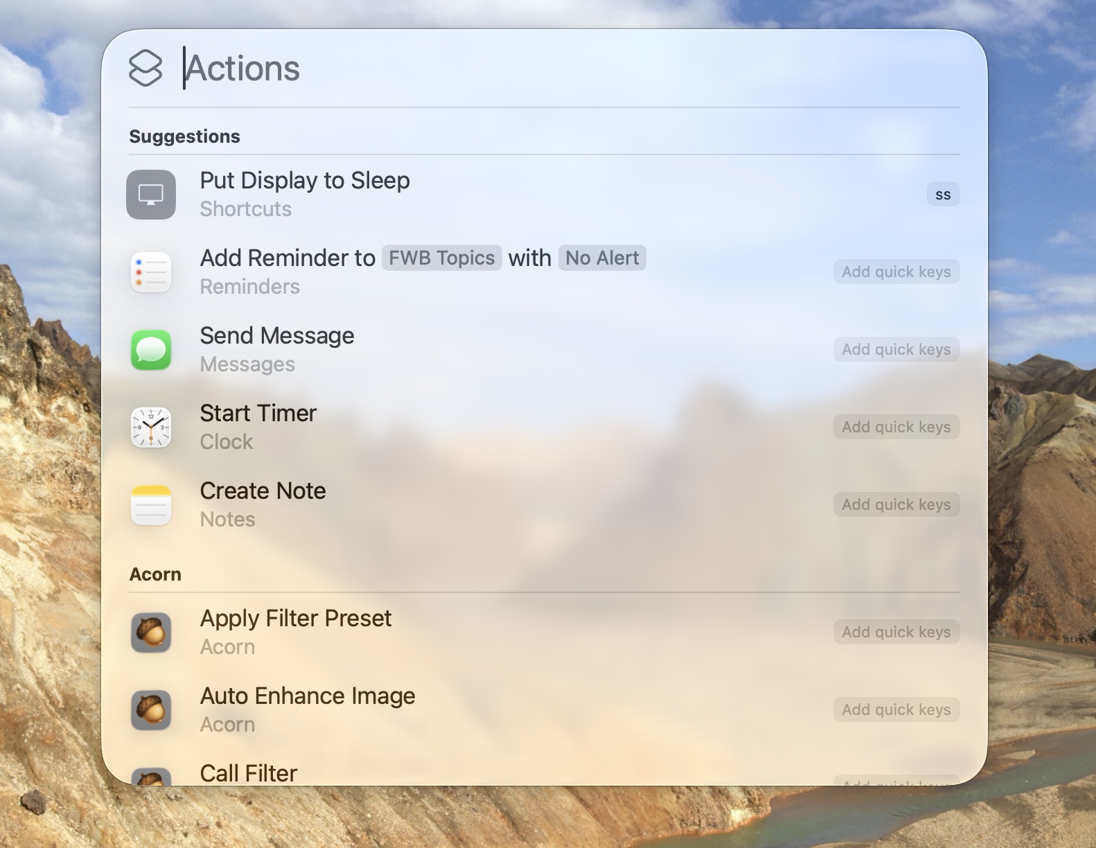 The part about shortcuts and shortcuts actions might not have leapt off the page at you, but in reality, this was an unexpected and very welcome gift from Apple to power users. This is the feature that made me decide to see if Spotlight could replace Raycast for me. I knew I’d need some additional apps to fill some gaps, but I’m already familiar with Mac power user utilities and was able to make a pretty good assessment of what that would look like.